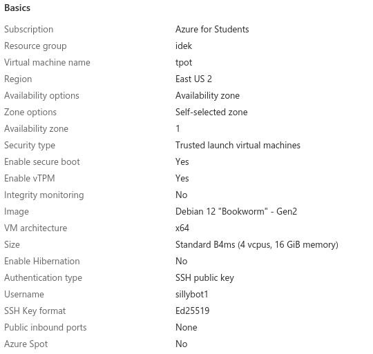 Size: Standard B4ms (4 vcpus, 16 GiB memory)