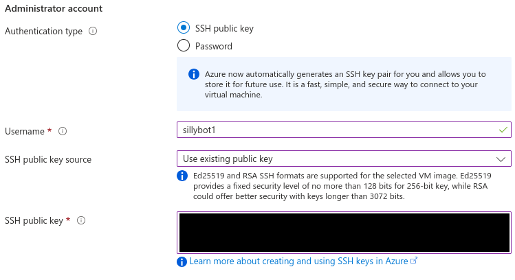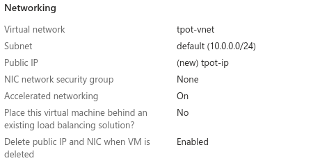 - Note: You can allow immediate remote access via port 22 during this setup, but this port will be exposed to ALL external IPs. For this reason, I suggest setting ‘Public inbound ports’ to None and then creating a more restricted, temporary NSG rule after deploying the VM (see Install step #1).