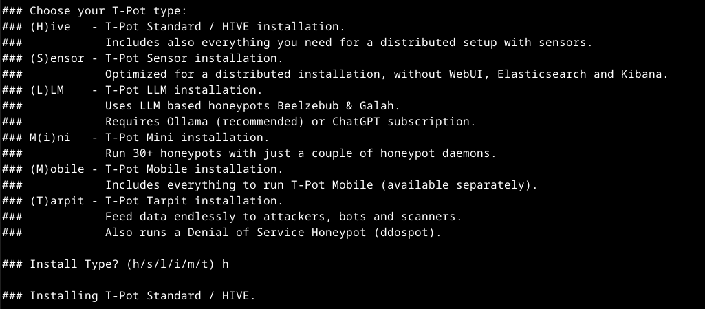 - T-Pot install type: ‘h’